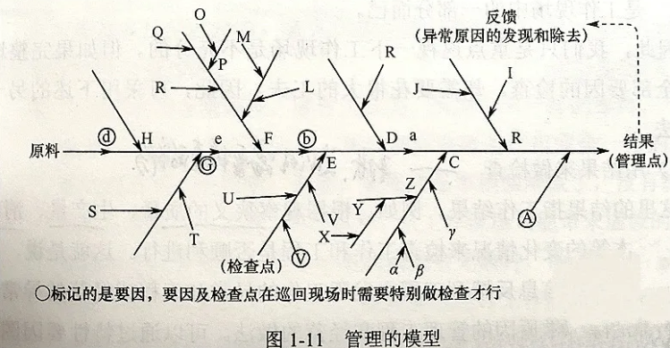 这里的结果指工作结果。例如,根据观察狭义的质量、生产量、消耗量、定额、成本等的变化情况来检查工作和工程是否顺利进行。看了结果之后,把信息反馈到工程中发现工作的异常和工程或经营的异常,从而考虑消除异常原因的管理工程和经营的做法。可以通过特性要因图去考虑其中的关系。